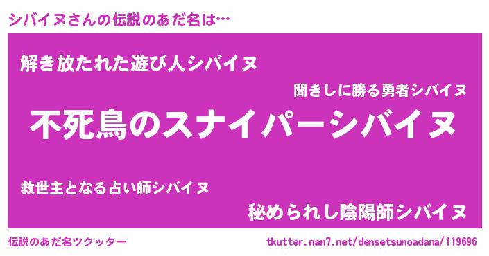 | 意味不明あだ名 | 『ペロリンシバイヌ』『自称シバイヌ』 |