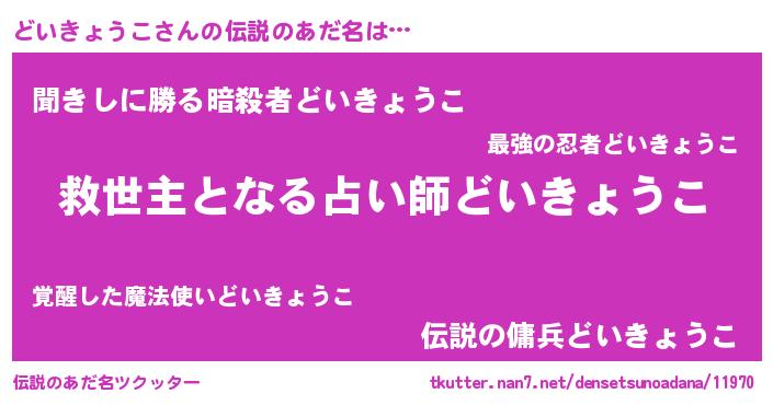 | 男性向けラノベタイトル風あだ名 | 『どいきょうこに滅ぼされるだけの簡単なお仕事です』 |
