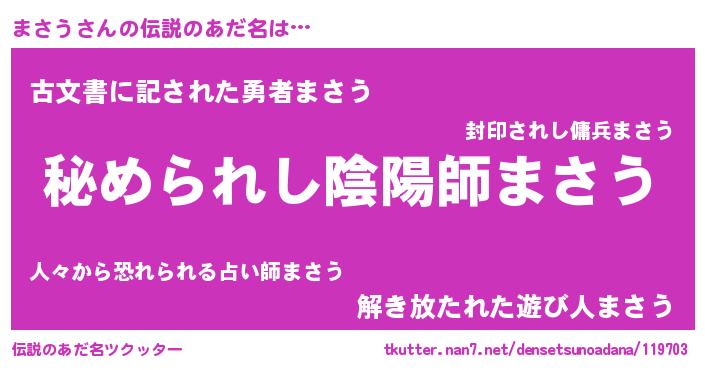 | ヒーロー風カッコイイあだ名 | 『ウルトラまさうマン』『ネオマサウ』 |