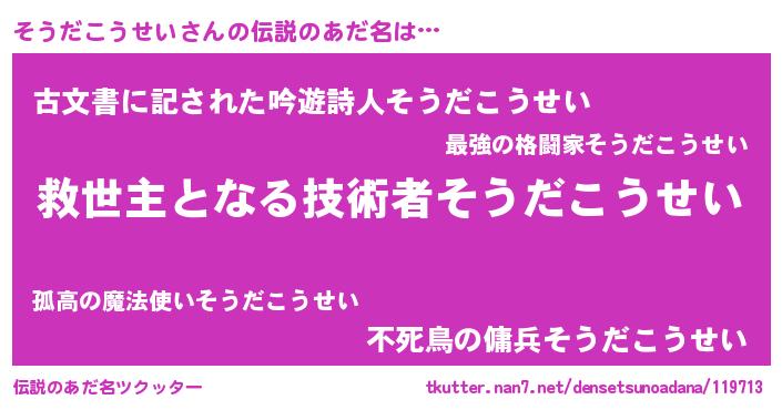| ヘコむあだ名 | 『そうだこうせい(小並感)』『そうにー』 |