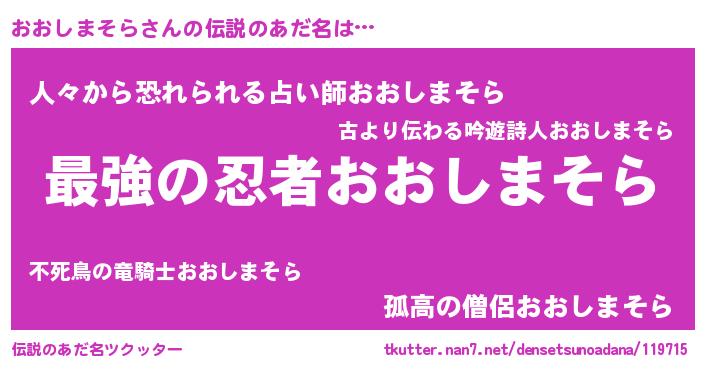 | 意味不明あだ名 | 『おおしまそらフォーエバー』 |