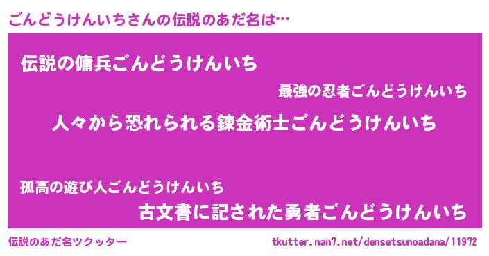 | 男性向けラノベタイトル風あだ名 | 『おまえをオタクにしてやるから、俺をごんどうけんいちにしてくれ! 』 |