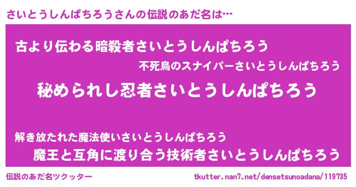 | ファンタジー風あだ名 | 『エターナルサイトウシンパチロウー』 |