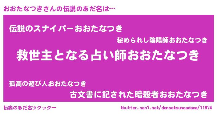 | 男性向けラノベタイトル風あだ名 | 『おおたなつき~年齢イコール彼女いない歴の魔法使い~』 |
