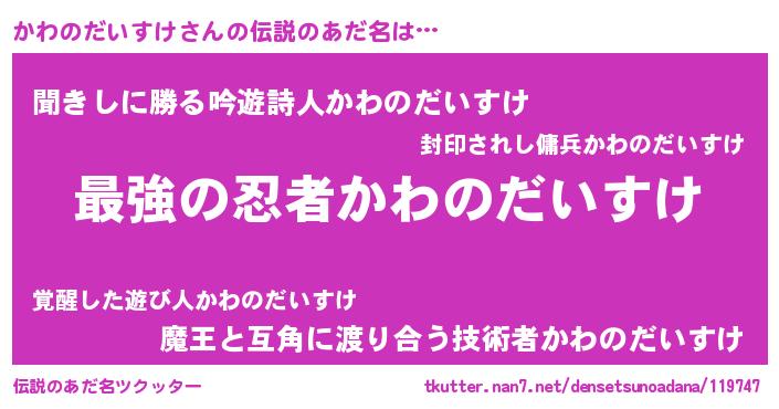 | ファンタジー風あだ名 | 『エターナルカワノダイスケー』 |