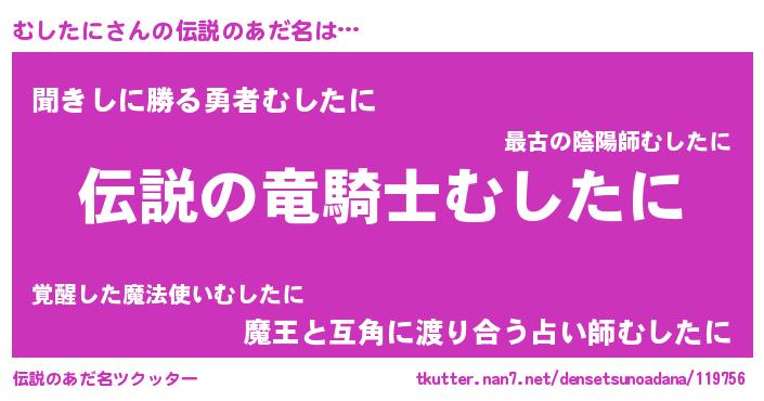 | 意味不明あだ名 | 『自称むしたに』『ペロリンむしたに』 |