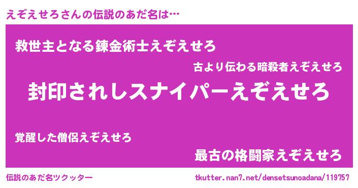 | ファンタジー風あだ名 | 『ゼエゾトゥ』『エゾフェル』 |