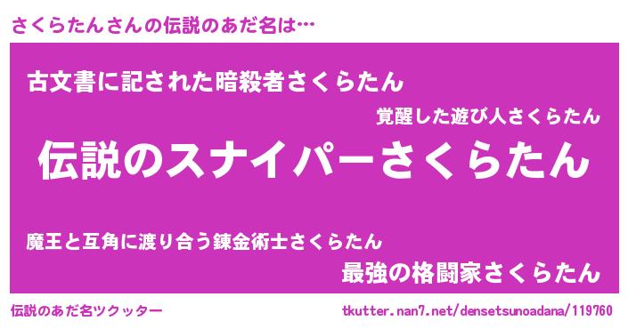 | 女子向けラノベタイトル風あだ名 | 『さくらたんなんてお断りですっ。』 |