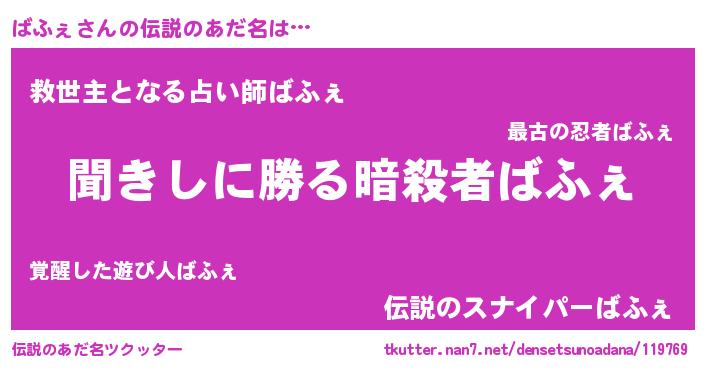| 意味不明あだ名 | 『永久保存ばふぇ』『自称ばふぇ』 |