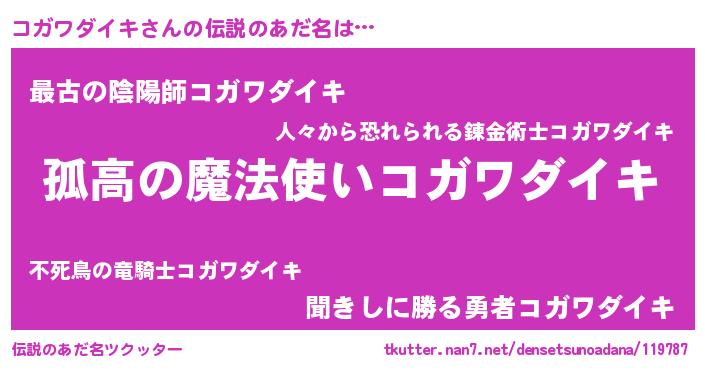 | 胡散臭い通販商品みたいなあだ名 | 『信頼と実績のサプリメント…その名も「コガワダイキ」』 |
