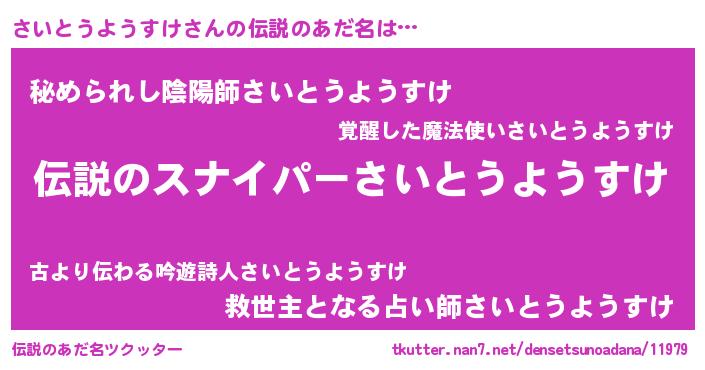 | 意味不明あだ名 | 『自称さいとうようすけ』 |