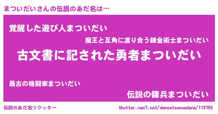 | ヒーロー風カッコイイあだ名 | 『ネオマツイダイ』『仮面マツダー』 |