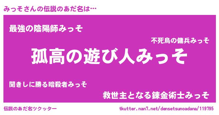 | 意味不明あだ名 | 『とにかく怪しいみっそ』 |