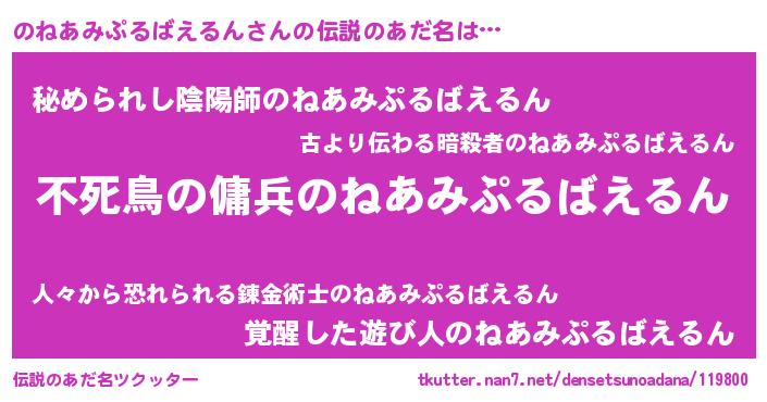 | ヒーロー風カッコイイあだ名 | 『スーパーノネアミプルバエルン』 |