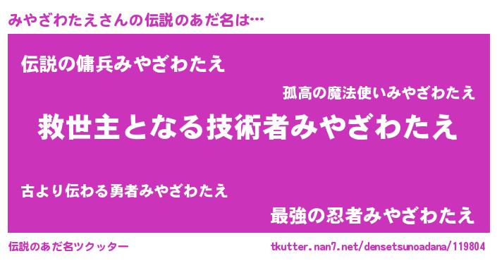 | 肩書あだ名 | 『みやざわたえ教授』『みやざわたえ店長』 |