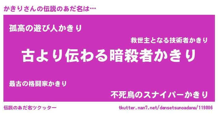 | 意味不明あだ名 | 『住所不定無職かきり(41歳)』『自称かきり』 |