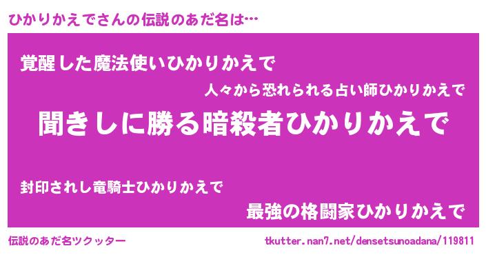 | ヒーロー風カッコイイあだ名 | 『ネオヒカリカエデ』『銀牙騎士ヒカ』 |