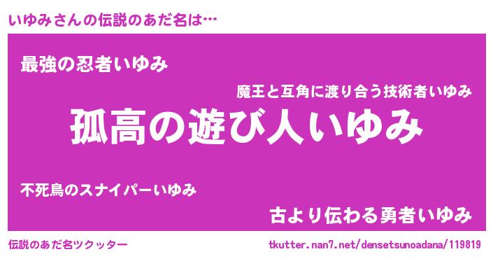 | 男性向けラノベタイトル風あだ名 | 『ダンジョンにいゆみを求めるのは間違っているだろうか』 |
