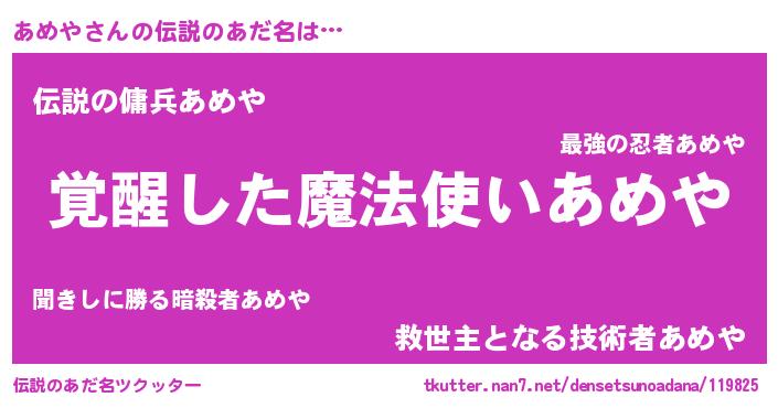 | 意味不明あだ名 | 『自称あめや』『住所不定無職あめや(11歳)』 |