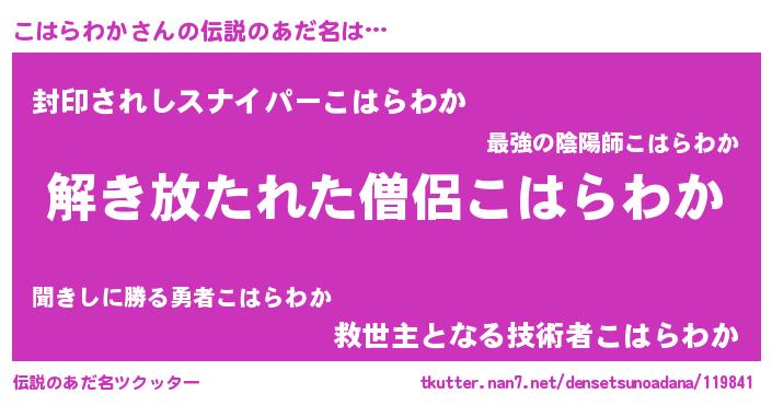 | ヒーロー風カッコイイあだ名 | 『サイバー戦士コハラワカ』 |