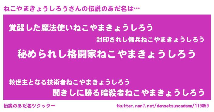 | 意味不明あだ名 | 『ねこやまきょうしろうフォーエバー』 |