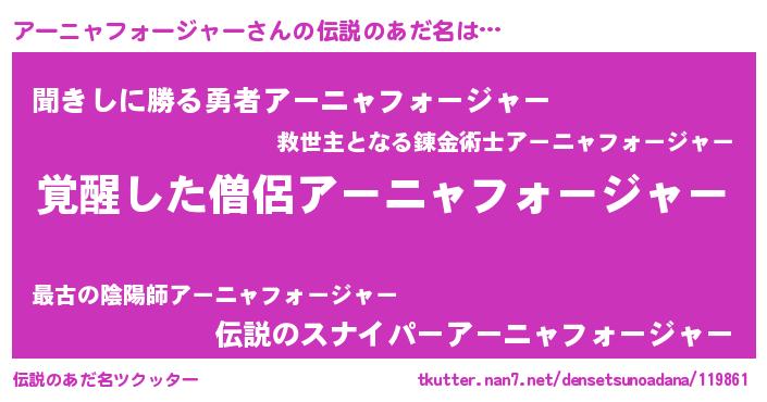 | ヒーロー風カッコイイあだ名 | 『最強戦士アーニャフォージャー』 |