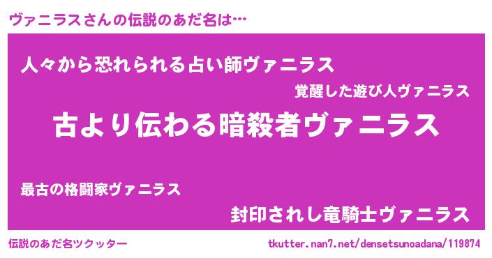 | ファンタジー風あだ名 | 『ヴァディッシュ』『ゼヴァトゥ』 |