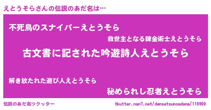 | 恥ずかしいあだ名 | 『えとちん』『プリティーえとうそら』 |