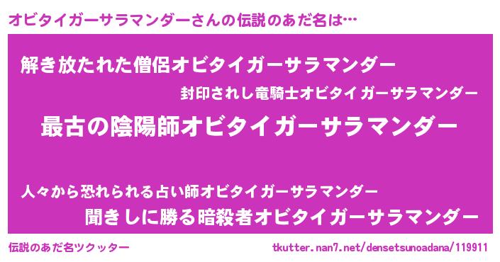 オビタイガーサラマンダーさんの伝説のあだ名をツクッター!
