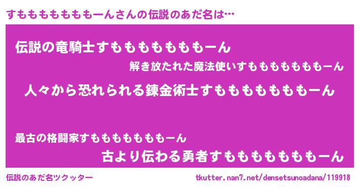 | ヒーロー風カッコイイあだ名 | 『正義の使者すもももももももーん』 |