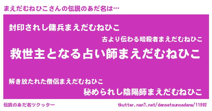 | ヘコむあだ名 | 『まえにゅー』『豆乳』『まえっちょ』 |