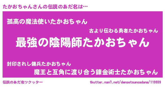| 女子向けラノベタイトル風あだ名 | 『たかおちゃんの婚約者』 |