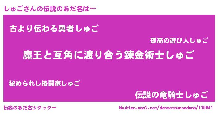 | ヘコむあだ名 | 『しゅご(苦笑)』『しゅもー』 |