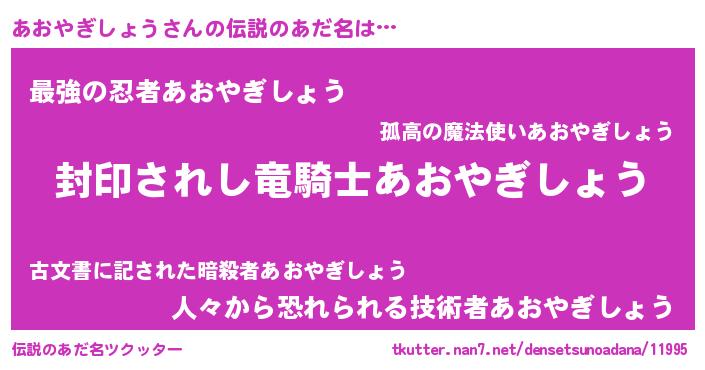 | 意味不明あだ名 | 『自称あおやぎしょう』 |