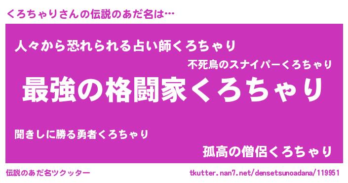 | 意味不明あだ名 | 『くろちゃりフォーエバー』 |