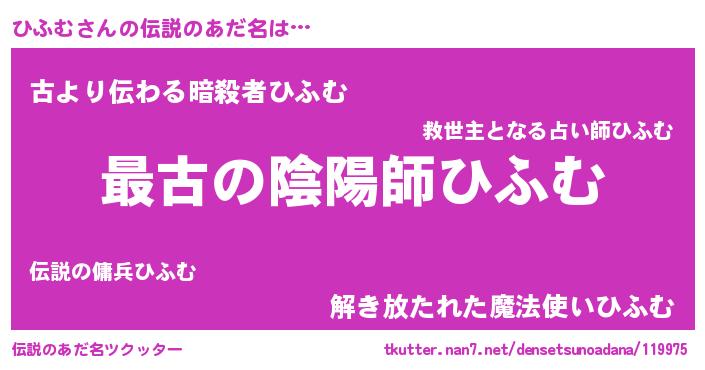 | ファンタジー風あだ名 | 『ゼヒフトゥ』『エターナルヒフムー』 |