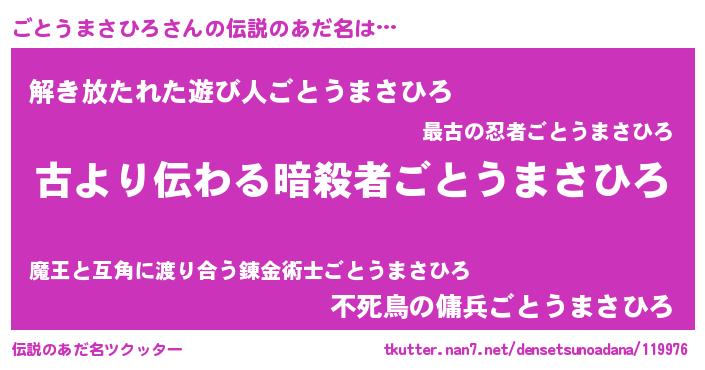 | ヒーロー風カッコイイあだ名 | 『ネオゴトウマサヒロ』『幻影騎士ゴト』 |