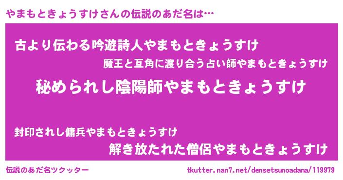| ヒーロー風カッコイイあだ名 | 『超時空戦士ヤマモトキョウスケ』 |
