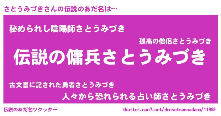 | 男性向けラノベタイトル風あだ名 | 『魔法科高校のさとうみづき』 |