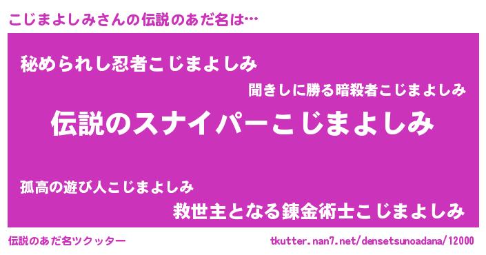 | 女子向けラノベタイトル風あだ名 | 『シンデレラこじまよしみ家の靴箱館』 |