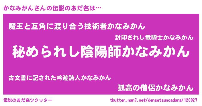 | 意味不明あだ名 | 『自称かなみかん』 |
