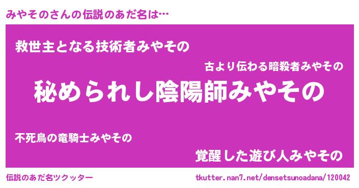 | ポケモン風あだ名 | 『ミヤソダネ』『ミヤゴンZ』 |