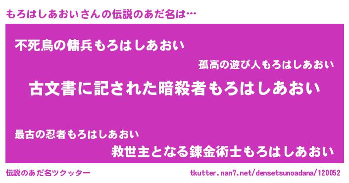 | ヒーロー風カッコイイあだ名 | 『ネオモロハシアオイ』『天弓騎士モロ』 |