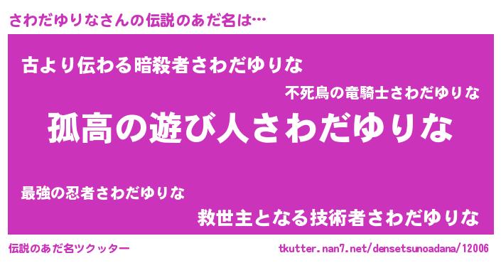| 意味不明あだ名 | 『とにかく怪しいさわだゆりな』 |