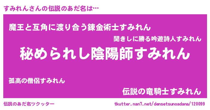 | ヒーロー風カッコイイあだ名 | 『仮面スミダー』『ウルトラすみれんマン』 |