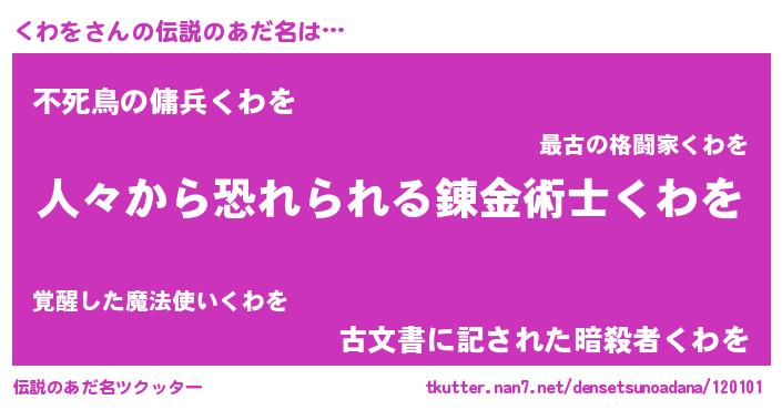 | ヒーロー風カッコイイあだ名 | 『友情の使者くわを』『スーパークワヲ』 |
