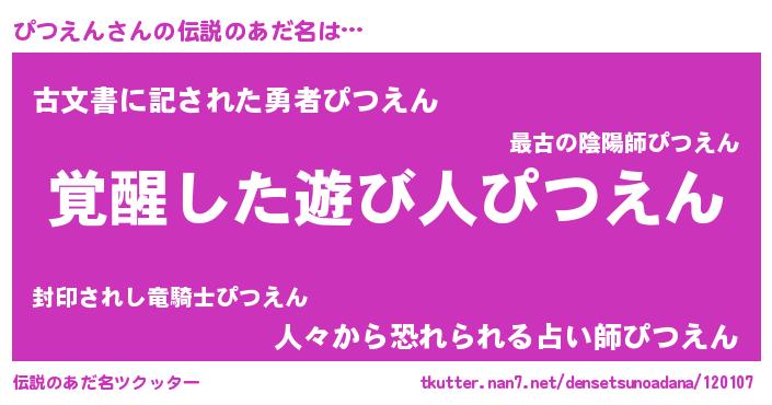 | 意味不明あだ名 | 『とにかく怪しいぴつえん』 |