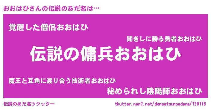 | 女子向けラノベタイトル風あだ名 | 『おおはひなんてお断りですっ。』 |