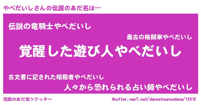 | 意味不明あだ名 | 『とにかく怪しいやべだいし』 |