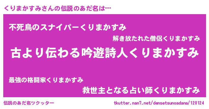 | 意味不明あだ名 | 『永久保存くりまかすみ』 |